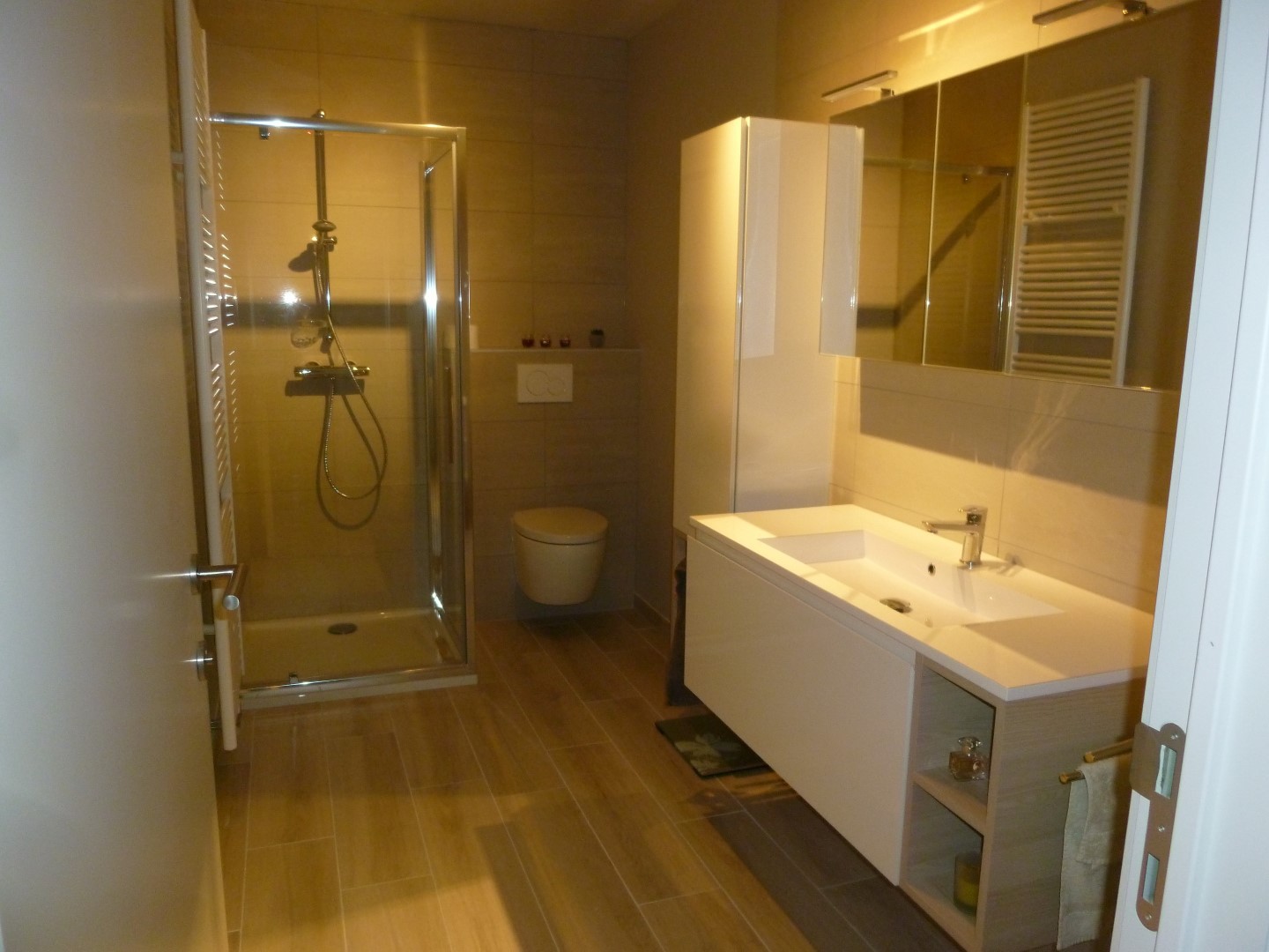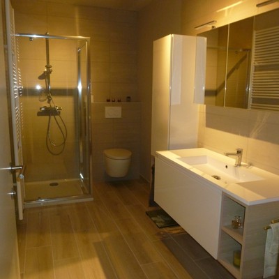 Douche, badkamermeubel lavabo en toilet